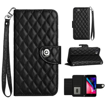 For iPhone SE 2022 / 2020 / 8 / 7 Rhombic Texture Flip Leather Phone Case with Lanyard(Black)