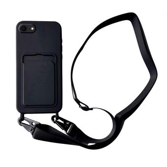 For iPhone SE 2022 / 2020 Card Slot Liquid Silicone Phone Case with Lanyard(Black)