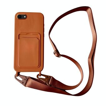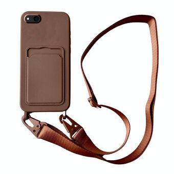 For iPhone SE 2022 / 2020 Card Slot Liquid Silicone Phone Case with Lanyard(Brown)