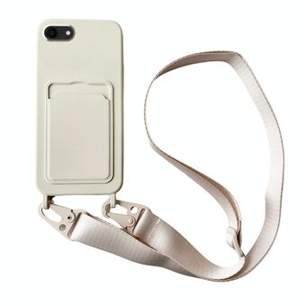 For iPhone SE 2022 / 2020 Card Slot Liquid Silicone Phone Case with Lanyard(White)