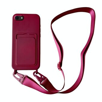 For iPhone SE 2022 / 2020 Card Slot Liquid Silicone Phone Case with Lanyard(Wine Red)