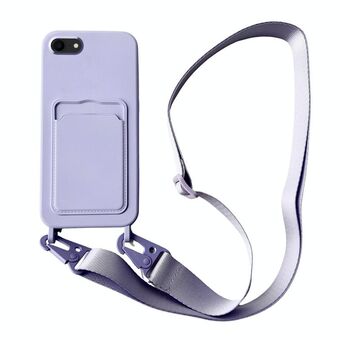 For iPhone SE 2022 / 2020 Card Slot Liquid Silicone Phone Case with Lanyard(Light Purple)