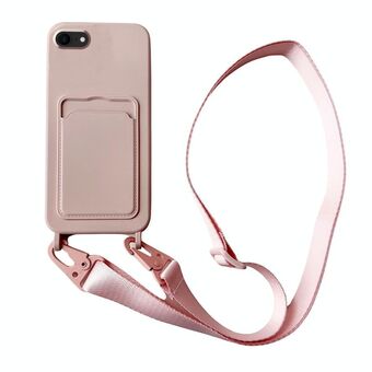 For iPhone SE 2022 / 2020 Card Slot Liquid Silicone Phone Case with Lanyard(Light Pink)