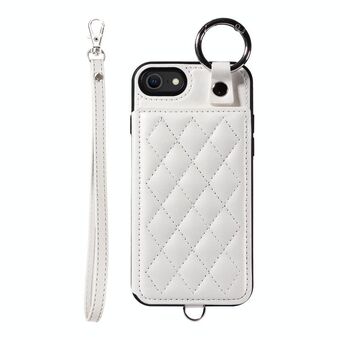 For iPhone SE 2022 / 2020 / 8 / 7 Rhombic Texture Card Bag Phone Case with Short Lanyard(White)