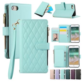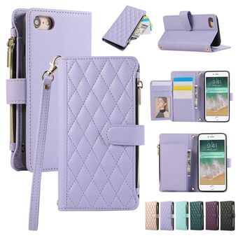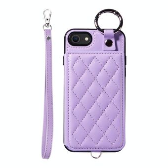 For iPhone SE 2022 / 2020 / 8 / 7 Rhombic Texture Card Bag Phone Case with Short Lanyard(Purple)