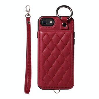 For iPhone SE 2022 / 2020 / 8 / 7 Rhombic Texture Card Bag Phone Case with Short Lanyard(Wine Red)