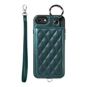 For iPhone SE 2022 / 2020 / 8 / 7 Rhombic Texture Card Bag Phone Case with Short Lanyard(Green)