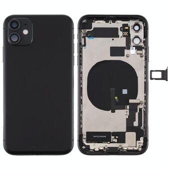 Battery Back Cover Assembly (with Side Keys & Power Button + Volume Button Flex Cable & Wireless Charging Module & Motor & Charging Port & Speaker Ringer Buzzer & Card Tray & Camera Lens Cover) for iPhone 11(Black)