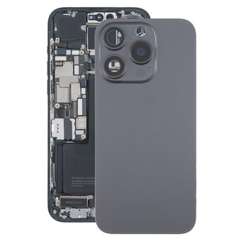 For iPhone 15 Pro Max Glass Battery Back Cover with Camera Lens Cover(Black)