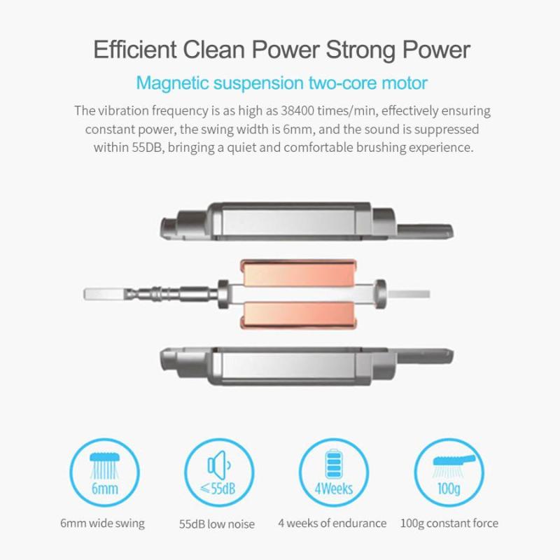 2. Vibration frequency: 38400 times/minute (magnetic levitation motor)