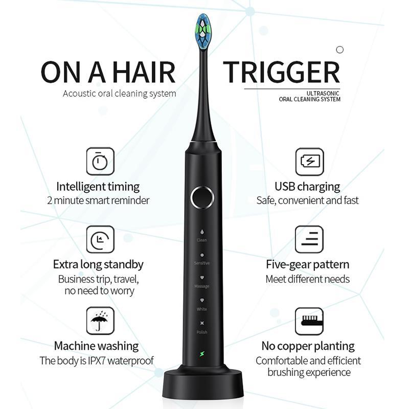 4. 5-speed mode: standard brushing, strong brushing, gum massage, efficient cleaning