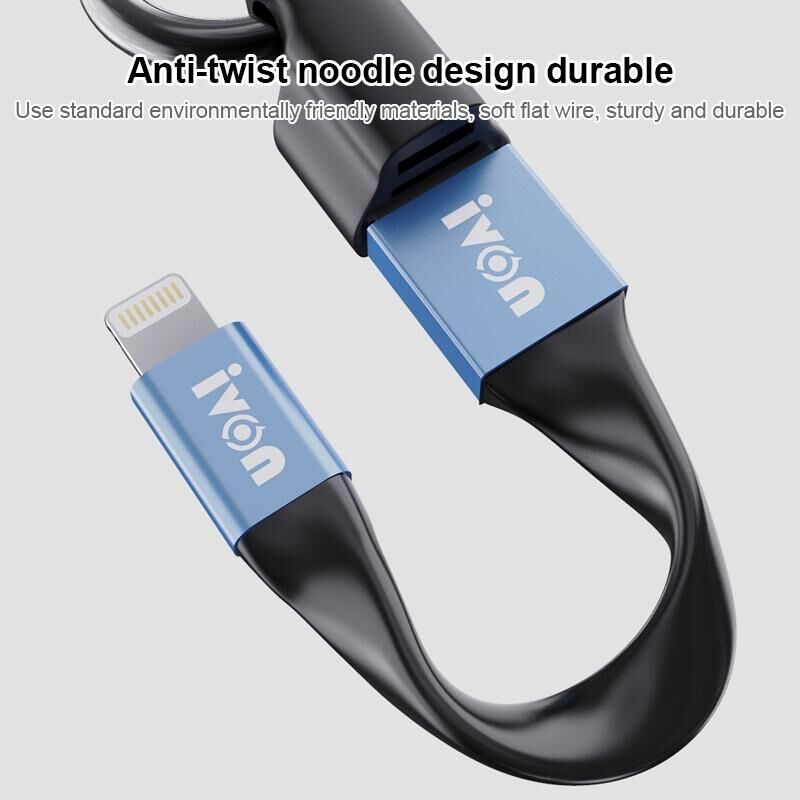 Καλώδιο δεδομένων IVON CA90 2.4A USB σε 8 ακίδες, φορητό με δακτύλιο, μήκος: 14.5cm (Σκούρο Γκρι) (IVON)
