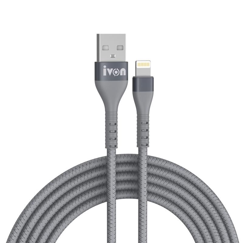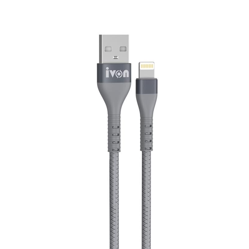 Καλώδιο Γρήγορης Φόρτισης και Μεταφοράς Δεδομένων IVON CA92 2.4A Max USB σε 8 ακίδες, με Επένδυση από Λάστιχο, Μήκος: 1.5m (Μαύρο) (IVON)