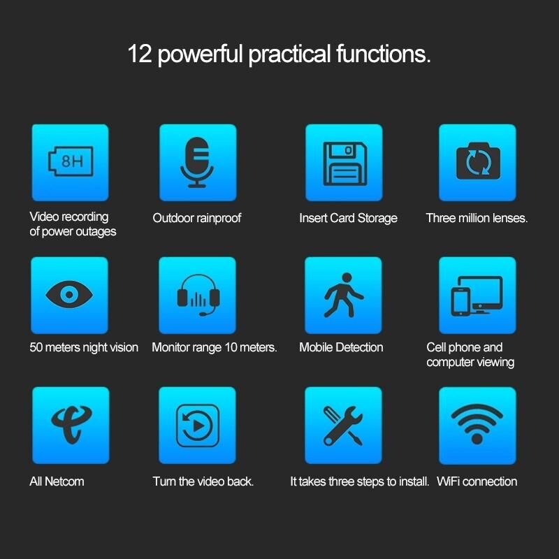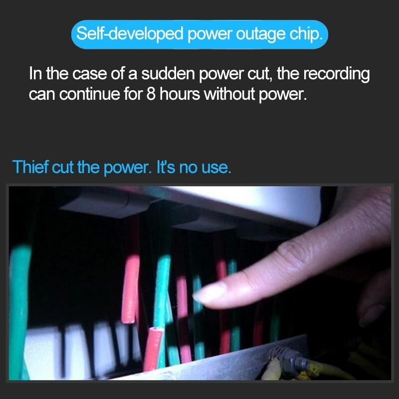 3. Αποθήκευση βίντεο με κάρτα TF, μεγάλος χρόνος αποθήκευσης, η κάρτα μνήμης 64GB μπορεί να αποθηκεύσει 720 ώρες βίντεο ανά μήνα.