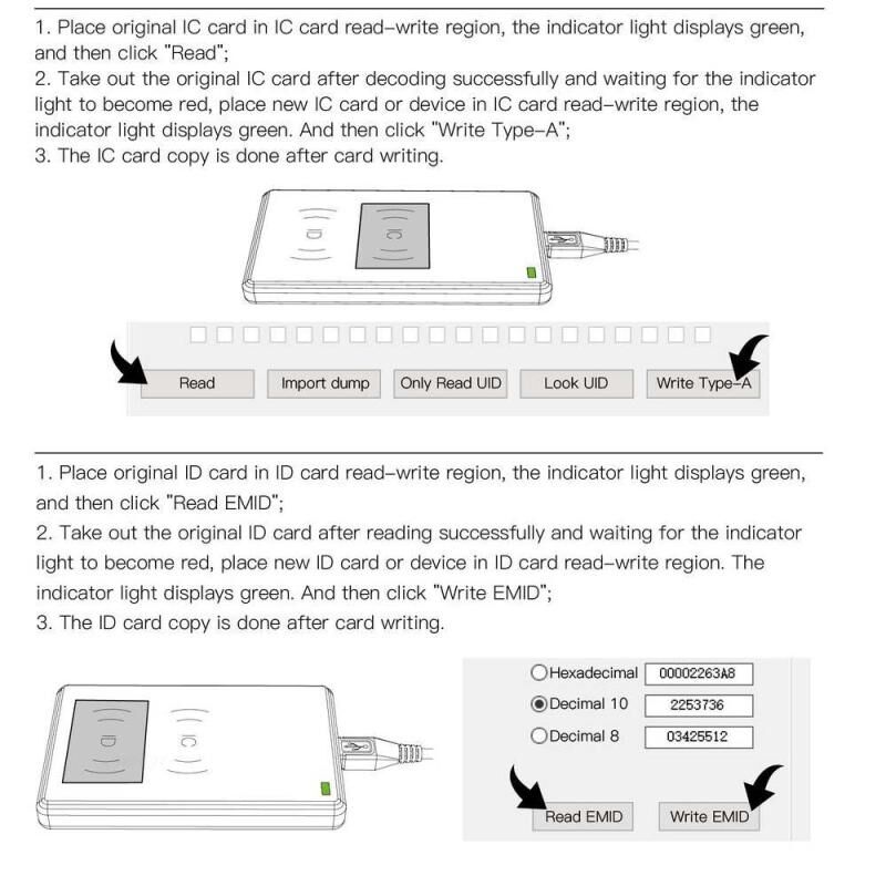 5. Λειτουργία: Μπορεί να αντιγράψει και να επεξεργαστεί κάρτες εγγύτητας IC και ID, μια ολοκληρωμένη συσκευή ανάγνωσης και εγγραφής καρτών εγγύτητας