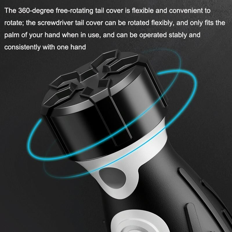 4. Το πίσω κάλυμμα που περιστρέφεται ελεύθερα κατά 360 μοίρες είναι εύκαμπτο και βολικό στην περιστροφή. το πίσω κάλυμμα του κατσαβιδιού μπορεί να περιστραφεί εύκαμπτα και ταιριάζει μόνο στην παλάμη σας κατά τη χρήση και μπορεί να λειτουργήσει σταθερά και με συνέπεια με το ένα χέρι