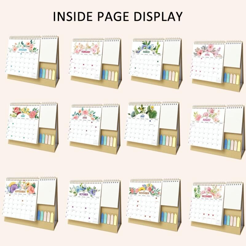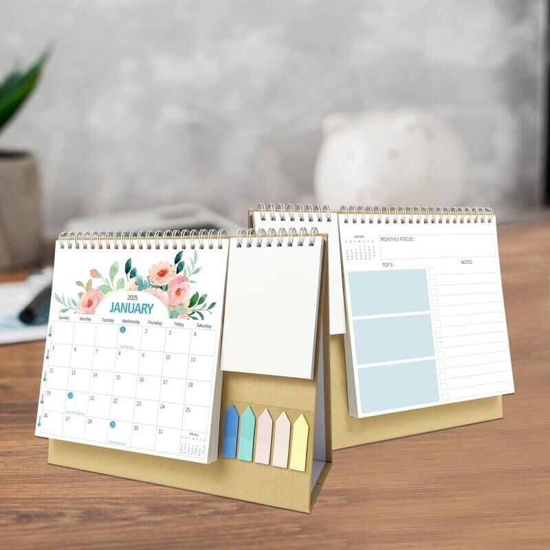 1. 2025 desktop calendar, with a calendar pocket on the front to store items, 5-color labels and portable memos for recording important matters; the back also has a monthly planning area/daily check-in area/monthly key area division to better plan your schedule