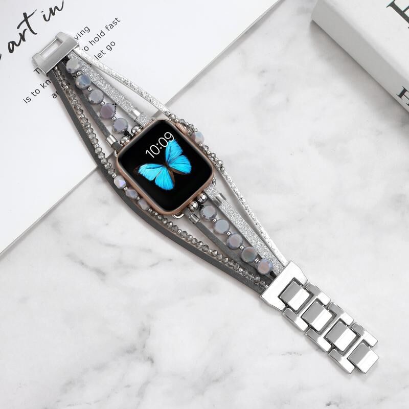 1. Σχέδιο αλυσίδας με χάντρες, συνδυασμός λουριού από μέταλλο και δέρμα