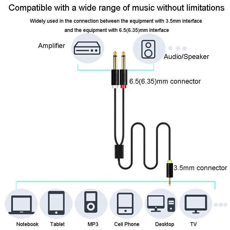 6. Συμβατό με ένα ευρύ φάσμα μουσικής χωρίς περιορισμούς, χρησιμοποιείται ευρέως σε εξοπλισμό με διεπαφή 3,5mm με διεπαφή 6,5 (6,35) mm μεταξύ της σύνδεσης εξοπλισμού