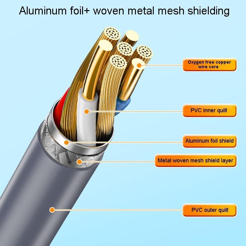 7. Θωράκιση αλουμινίου + διπλή θωράκιση πλεκτού μεταλλικού πλέγματος, μειώνοντας την απώλεια, ταχύτερη εκτύπωση