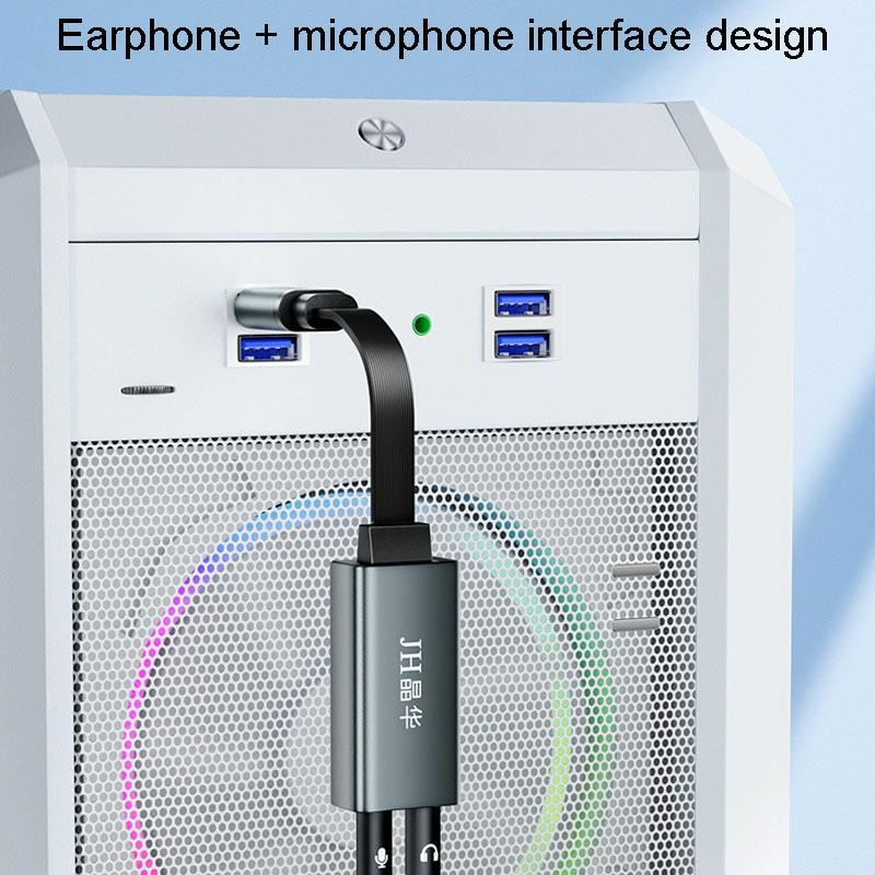 5. Ανεξάρτητη διεπαφή ακουστικών, σχεδιασμός με μεγαλύτερη απόσταση κέντρου 10mm, αποχαιρετισμός στις παρεμβολές σύνδεσης, κατάλληλο για ακουστικά υπολογιστή διπλής υποδοχής ή συμβατικά ακουστικά/ηχεία 3 πόλων + επιτραπέζιο μικρόφωνο