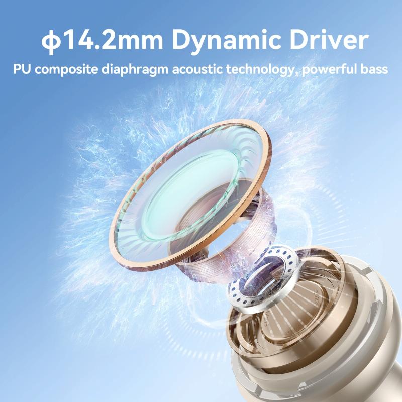 1. 14.2mm dynamic Driver: PU composite diaphragm acoustic technology, powerful bass