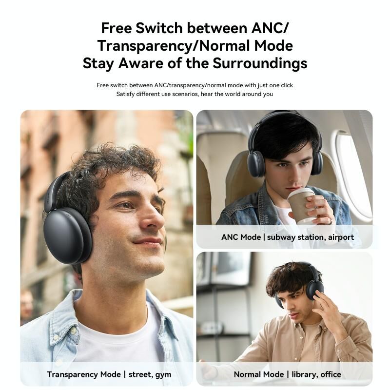 3. ANC: Hybrid active noise cancellation with Indoor, Outdoor, Travel, and Transparency modes