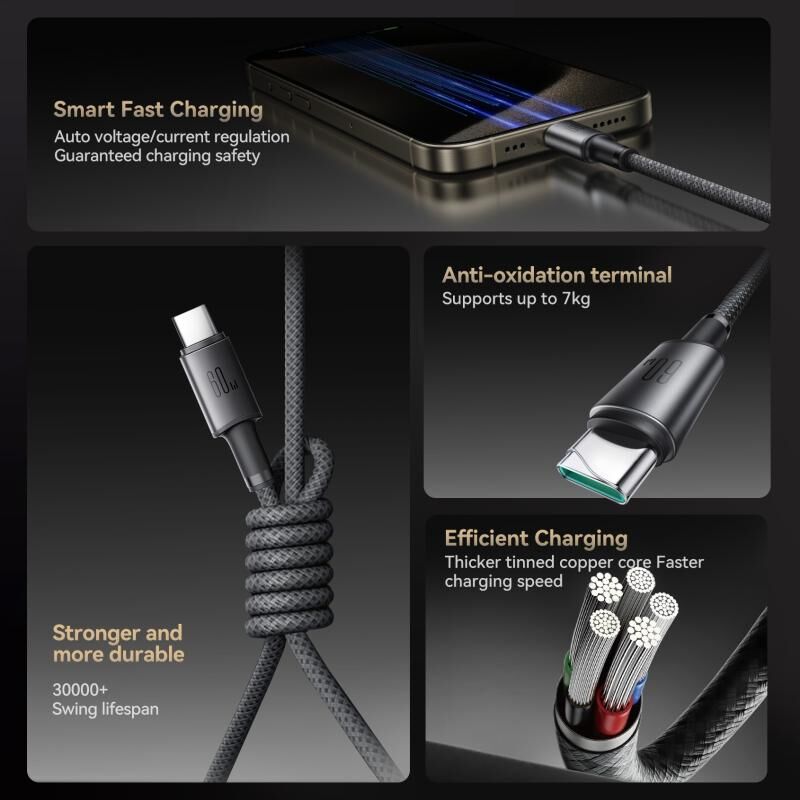 2. Ανώτερη αντοχή: Αυτά τα καλώδια είναι κατασκευασμένα από ποιοτικά υλικά και επικαλυμμένα με TPE υψηλής ποιότητας. Έχουν περάσει 10.000 δοκιμές κάμψης και δεν μπερδεύονται για επιπλέον προστασία και αντοχή.