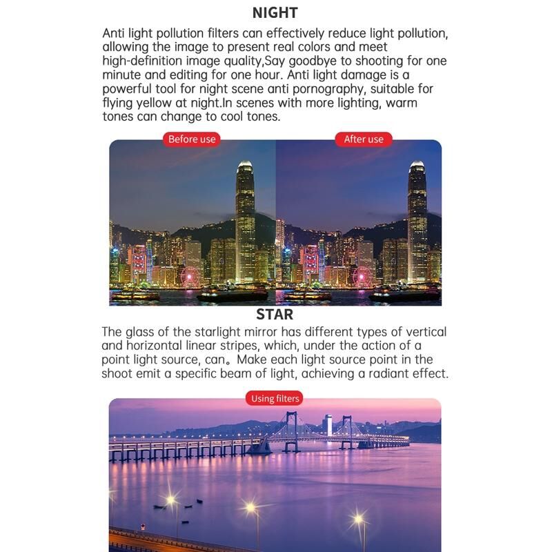 2. Οπτικό γυαλί HD επαγγελματικής ποιότητας, με υψηλή αντοχή και αντοχή στις γρατζουνιές, διαδικασία νανοεπίστρωσης πολλαπλών στρώσεων, εξασφαλίζει καθαρή απεικόνιση, ικανοποιώντας τα υψηλά πρότυπα απεικόνισης pixel κατά τη λήψη.