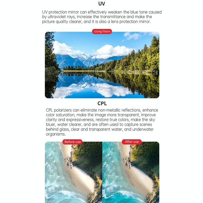 2. Οπτικό γυαλί HD επαγγελματικής ποιότητας, με υψηλή αντοχή και αντοχή στις γρατζουνιές, διαδικασία νανοεπίστρωσης πολλαπλών στρώσεων, εξασφαλίζει καθαρή απεικόνιση, ικανοποιώντας τα υψηλά πρότυπα απεικόνισης pixel κατά τη λήψη.
