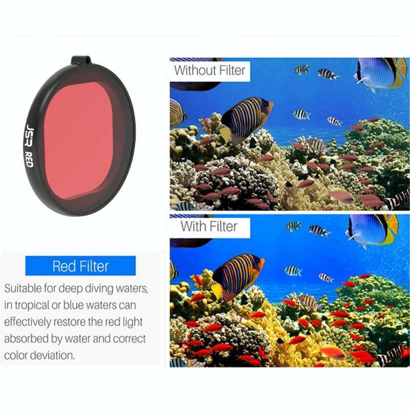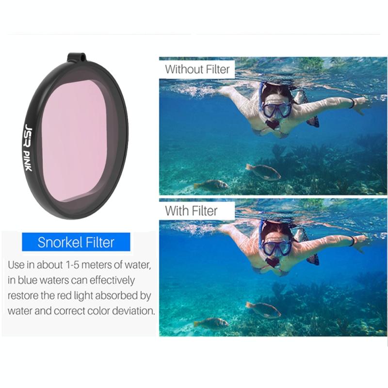 - Purple filter: Use in about 5-25 meters of water can effectively reduce the color deviation of green plants