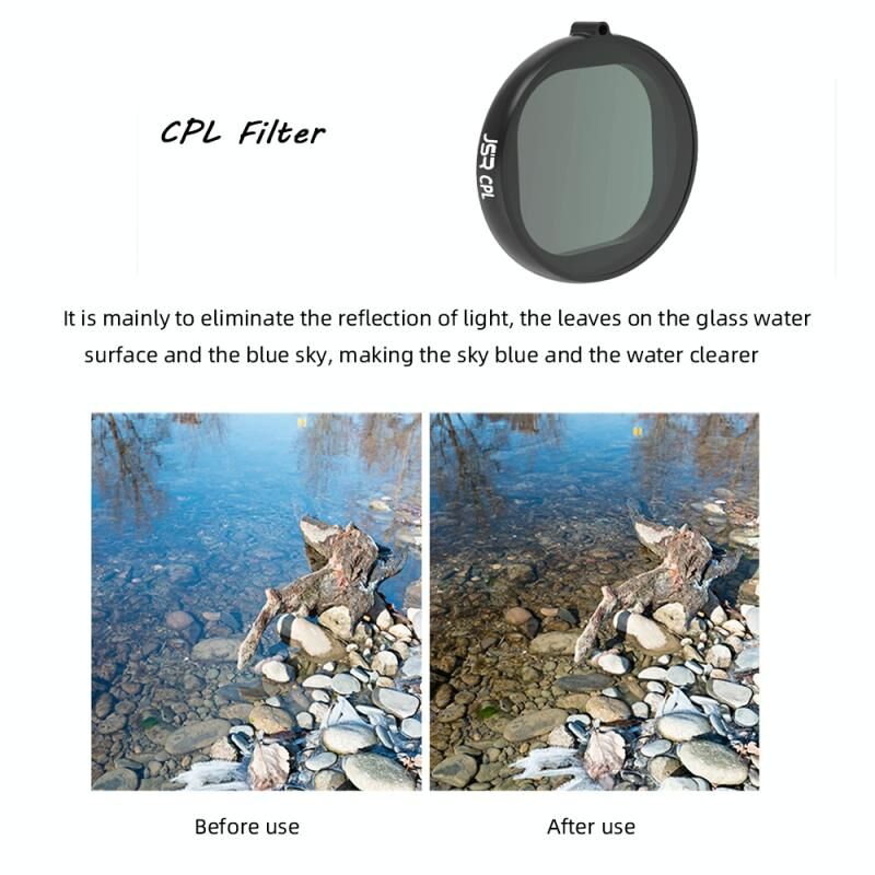 2. CPL lens removes unwanted reflections from non-metallic surfaces such as water or glass and glare from the sun. Increases color saturation, creating deep, rich scenic images. Helps to reduce the amount of light entering the lens.
