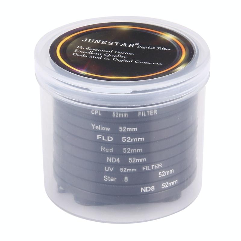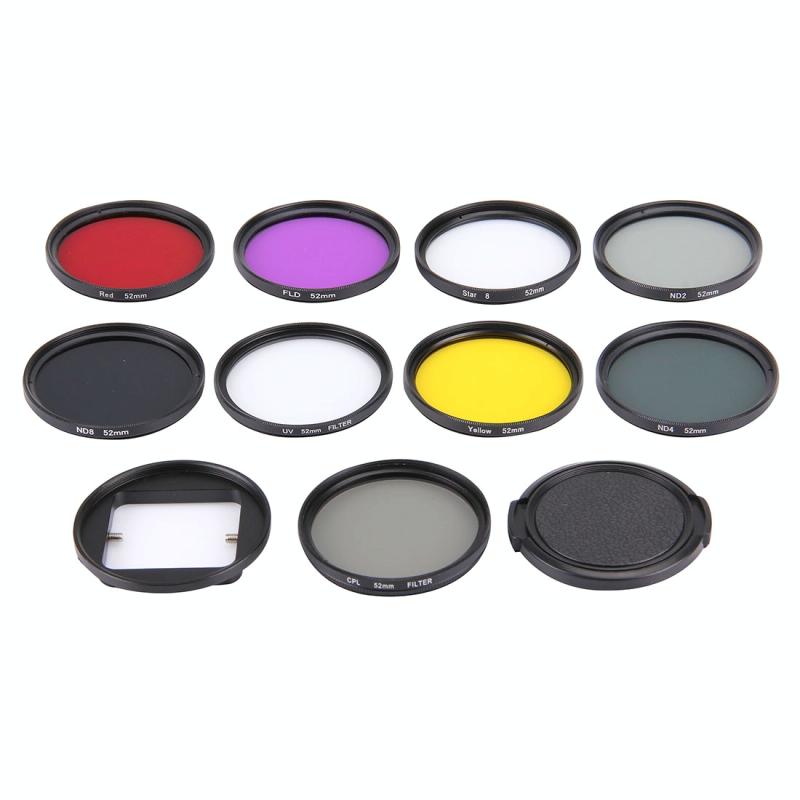JUNESTAR 11 in 1 Proffesional 52mm Lens Filter(CPL + UV + ND8 + ND4 + ND2 + Star 8 + Red + Yellow + FLD / Purple) & Waterproof Housing Case Adapter Ring & Lens Protective Cap for GoPro HERO4 / 3+ / 3 & Xiaomi Xiaoyi Yi I / II 4K Sport Action Camera (JSR)
