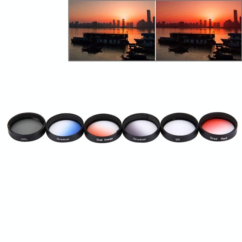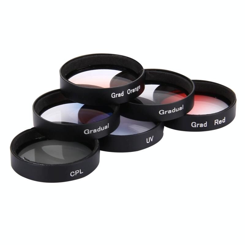 2. 6 σε 1 μεγάλο πακέτο: Φίλτρο CPL + φίλτρο UV + βαθμιαίο κόκκινο + βαθμιαίο πορτοκαλί + βαθμιαίο μπλε + βαθμιαίο γκρι σε ένα πακέτο.