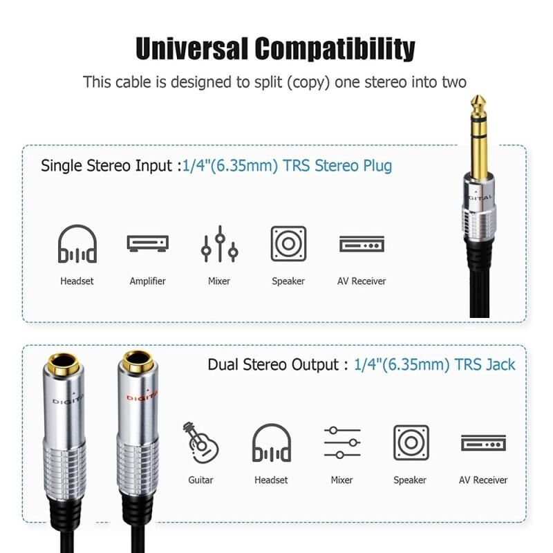 3. Two-in-one 6.35 male audio cable to two female audio signal cables, easy to use.