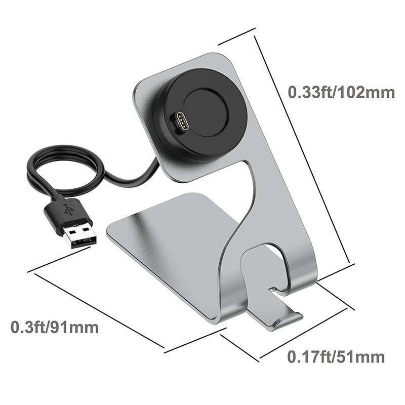 JUNSUNMAY Για Garmin Venu 3 / Venu 3S Βάση Φόρτισης Ρολογιού από Κράμα Αλουμινίου με Θύρα USB, Μήκος: 1.5μ (Ασημί) (JUNSUNMAY)