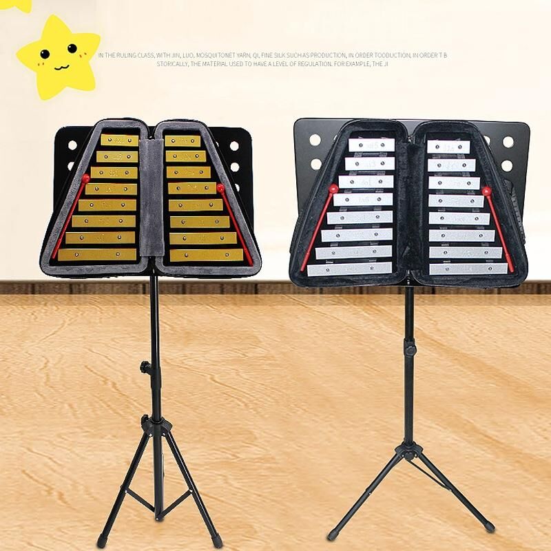 JZ-35 16-Tone Double Row Carillon Orff Percussion Instrument, Color: Golden