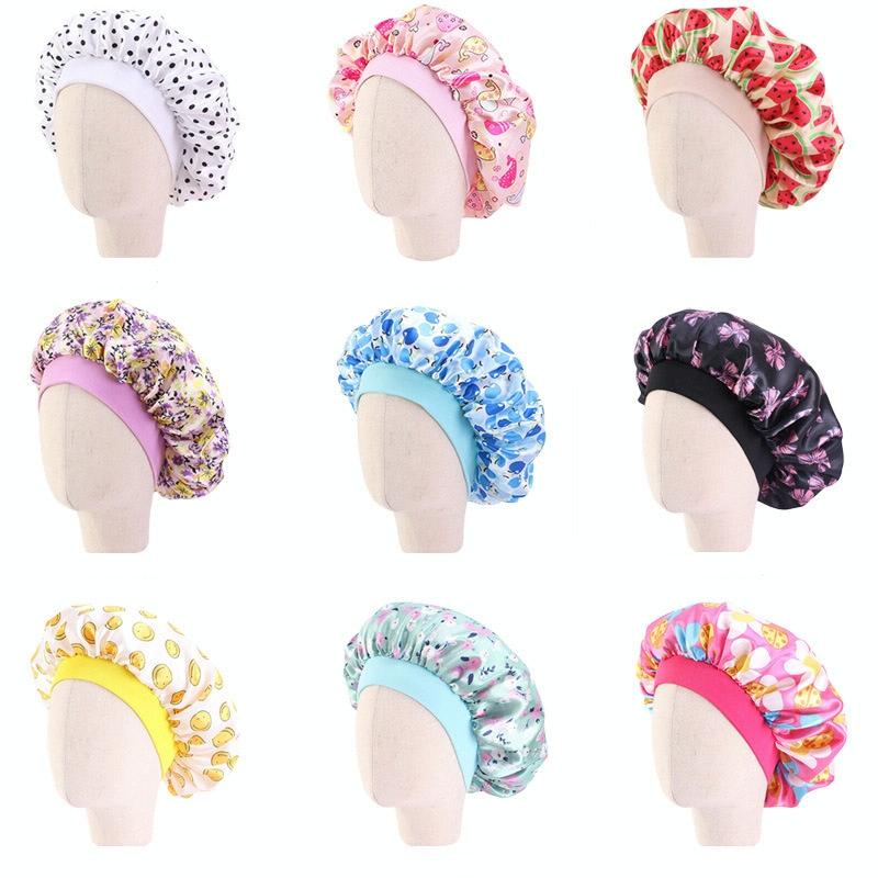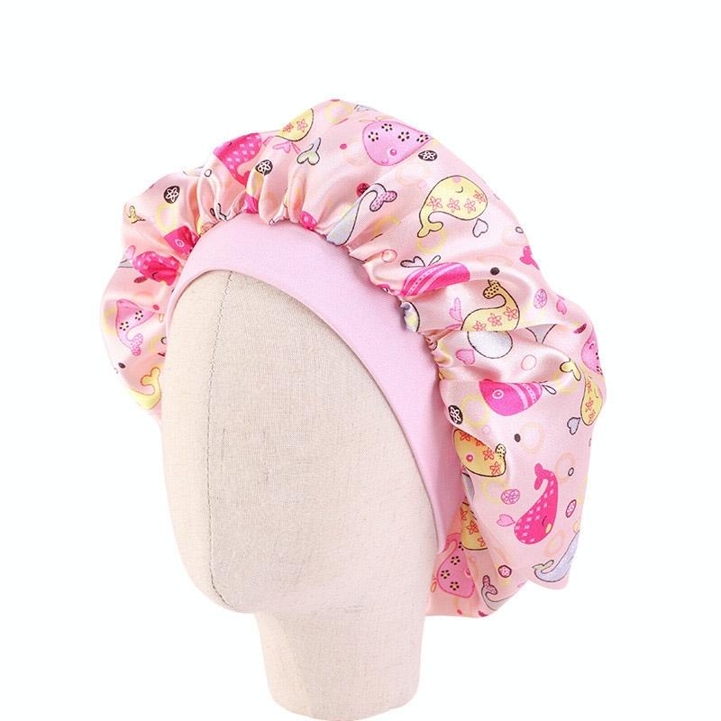 K-14 Children Printed Satin Nightcap Adjustable Stretch Hair Care Hat Shower Cap, Size: One Size(Dolphin Pink)