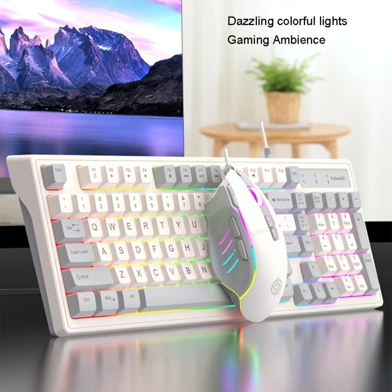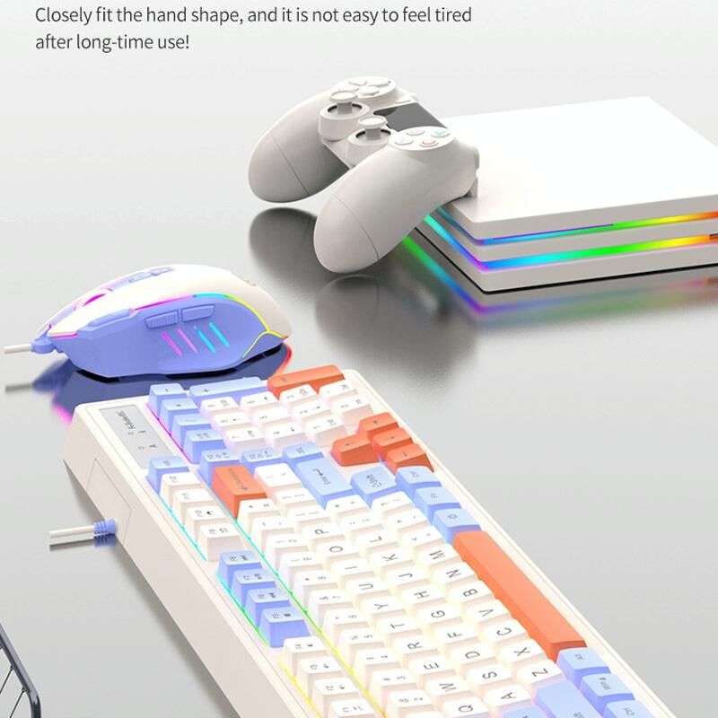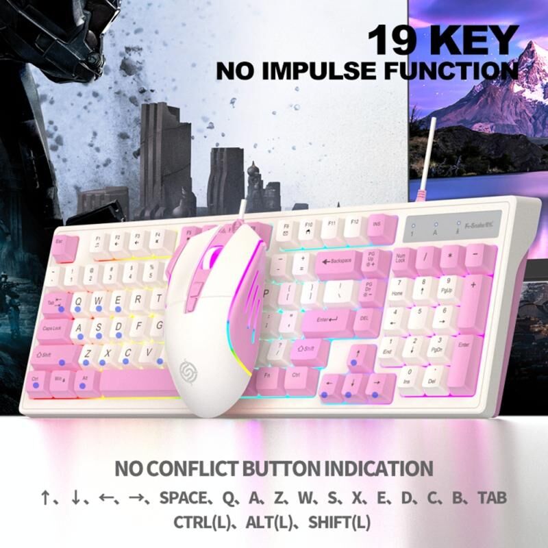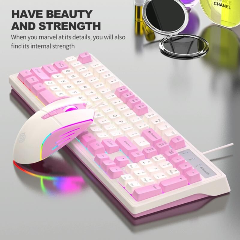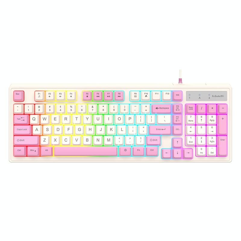 K-Snake Wired E-Sports Keyboard Mouse Mechanical Feel 98 Key Desktop Computer Notebook Keyboard, Style: Single Keyboard (Pink) (K-Snake)