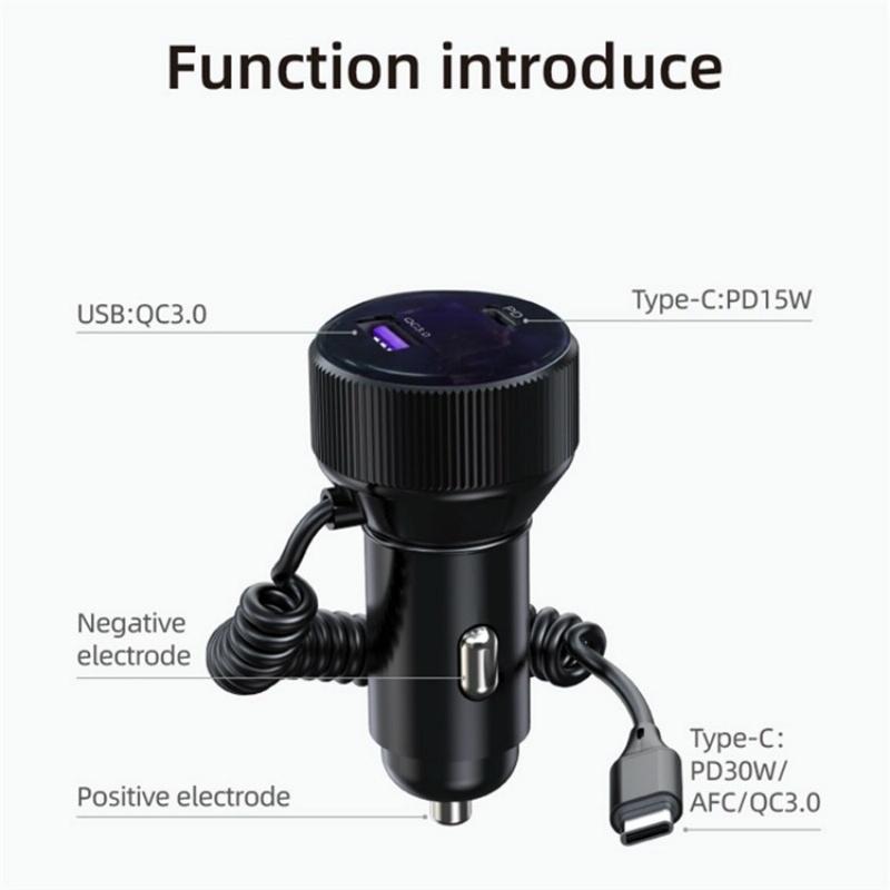 2.The retractable Type-C cable supports PD 30W fast charging, delivering swift power to compatible devices for efficient charging on the go