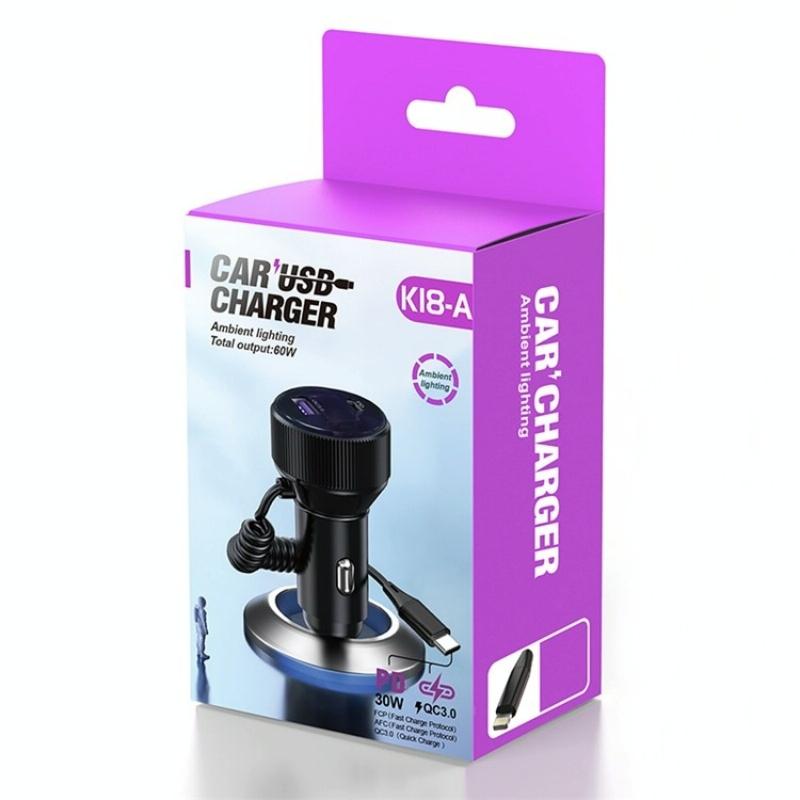 1.This car charger features both a Type-C port and a USB port, allowing you to charge multiple devices simultaneously while on the road