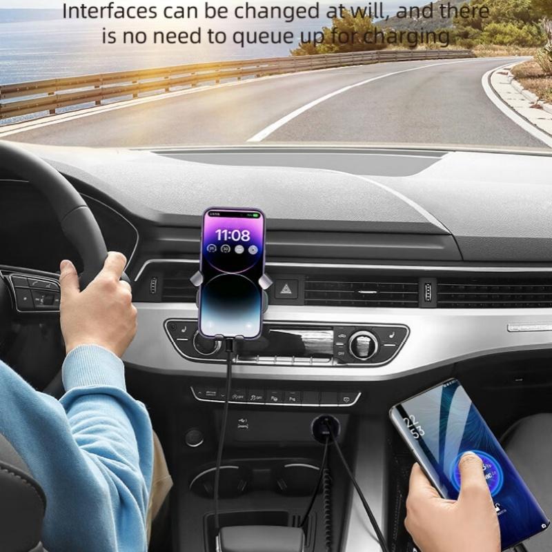 1.This car charger features both a Type-C port and a USB port, allowing you to charge multiple devices simultaneously while on the road
