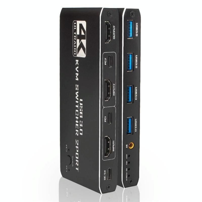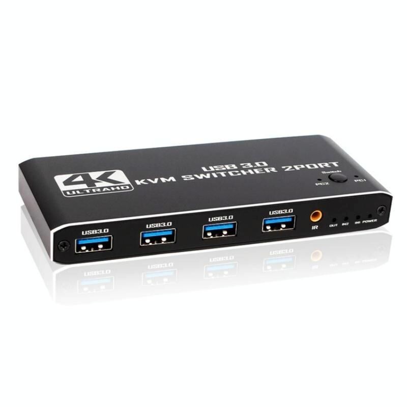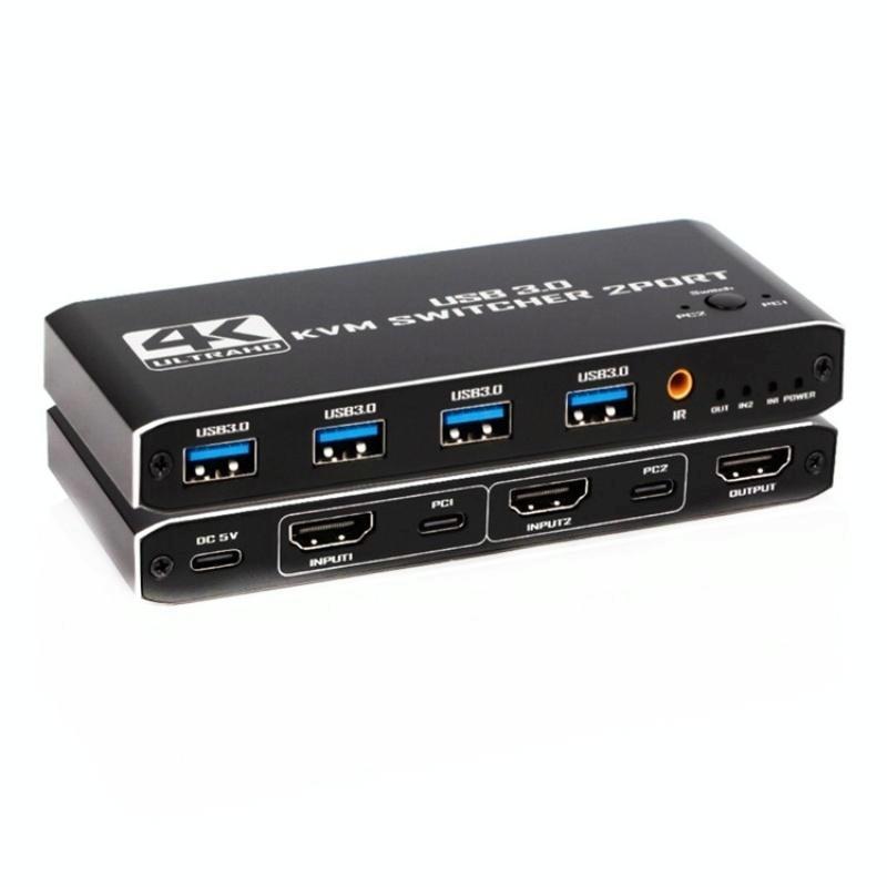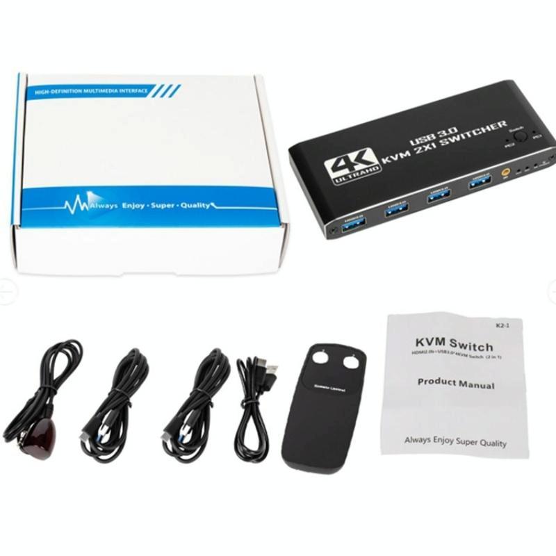 K2-1 Monitor Sharing 4K 60Hz KVM Switch 2 In 1 Out USB 3.0 HDMI 2.0 Remote Control Switcher