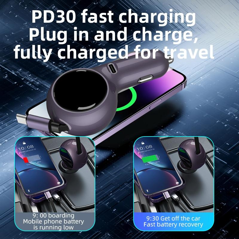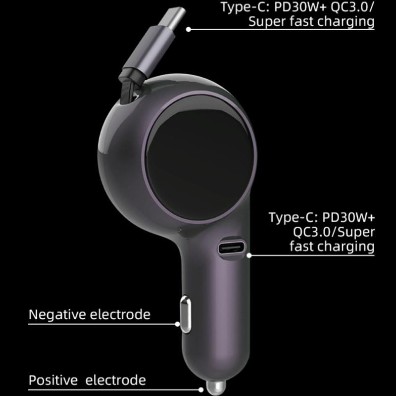 2.Type-C head: PD 30W fast charge/super fast charge/QC3.0 fast charge