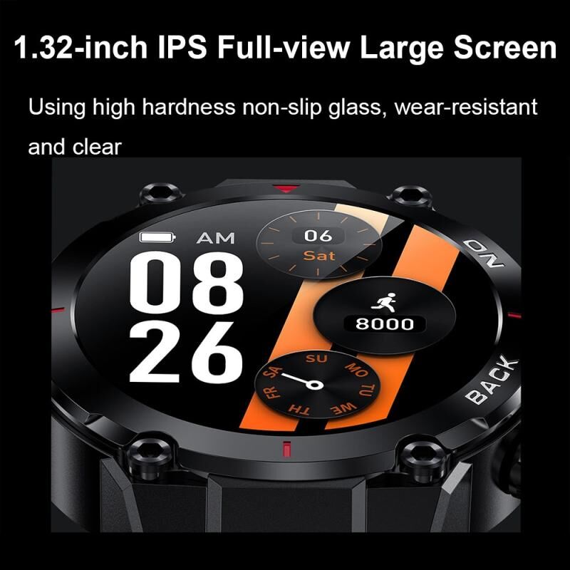 Έξυπνο ρολόι K37 1,32 ιντσών με παρακολούθηση καρδιακού ρυθμού και λειτουργία γεωγραφικού εντοπισμού (GPS) (Μαύρο)