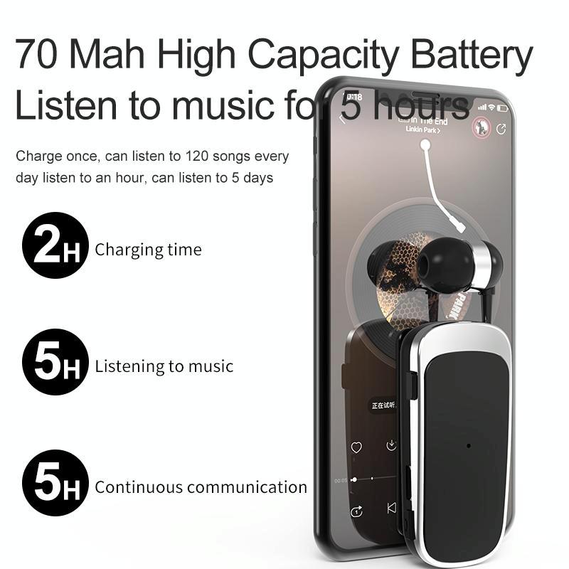 11. The earpiece has a retractable pull-wire function design, so there is no need to put the earphone in the ear for a long time