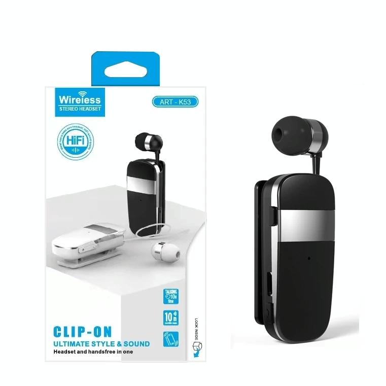 K53 Stereo Wireless Bluetooth Headset Calls Remind Vibration Wear-Clip Driver Auriculares Earphone For Phone(Gray)
