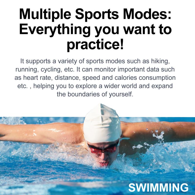 1. Function: Bluetooth call/Bluetooth music (super clear sound quality), weather display, heart rate detection, blood pressure detection, blood oxygen detection, time display, step counting, calories, distance, sleep monitoring, power on/off display, stopwatch, multi-sports mode, call notification, message reminder, multi-language push, alarm reminder, remote photo taking, sedentary reminder