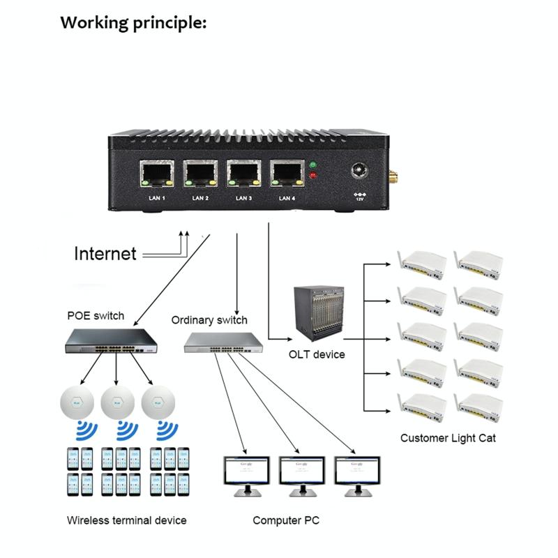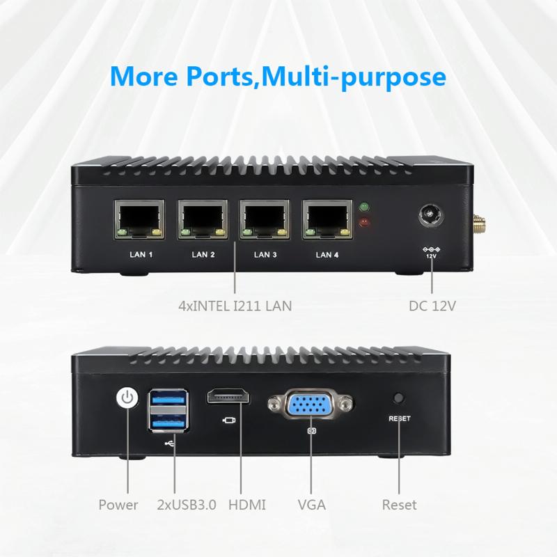 4. Multi-ports: 4xLAN ports, DC-in, 2xUSB3.0, HDMI, VGA, power ON/OFF, 2xantenna ports