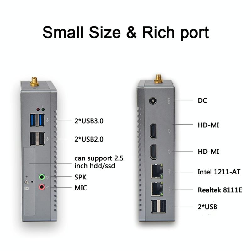 6. Multi-ports: 2xLAN ports, 2xHDMI ports, 4xUSB2.0, 2xUSB3.0, 1xDC port, 1xHDD slot, SPK, MIC